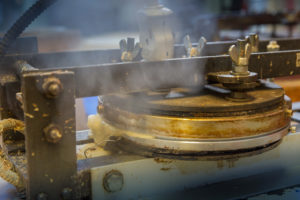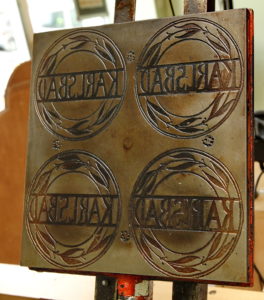 Eisenplatte von der Maschine die zur Produktion der pikannten Oblaten dienen