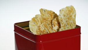 pikannten Oblaten in Schälchen in roter Geschänkdose